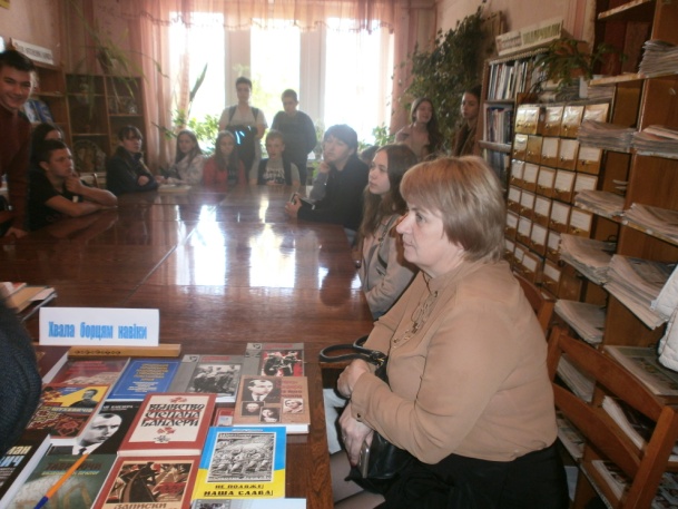 Бібліотекар відділу обслуговування Кікоть Г.О. розповіла учням про роботу читального залу та довідково-бібліографічний апарат (каталоги та картотеки) бібліотеки.