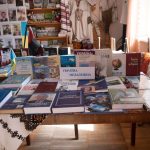 Бібліотечна світлиця святково оформлена: вишиті рушники, атрибути української національної символіки, твори мистецтва.