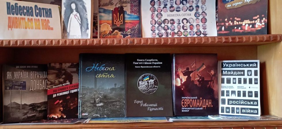 До дня пам’яті Героїв Небесної Сотні в Косівській центральній міській бібліотеці проведено літературну мініатюру «Я слухаю твій голос із небес».