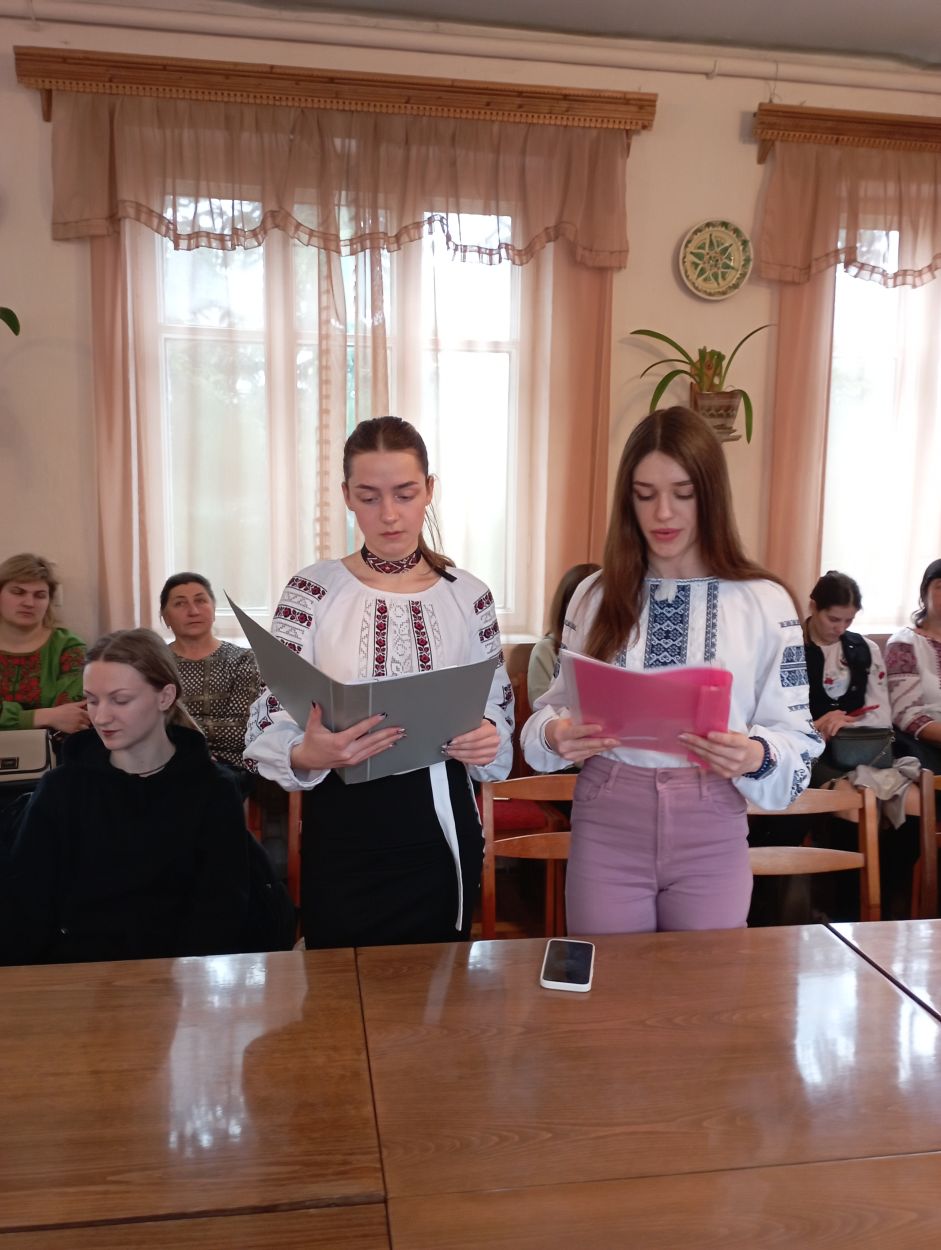 Бібліотечні працівники організували викладку літератури з фондів бібліотеки “Нас єднає рідна мова”. З цікавими фактами про українську мову виступили учениці 11-Б кл. Косівського ліцею #2 ім.М.Павлика Вергатюк Ю.та Сінітович М.